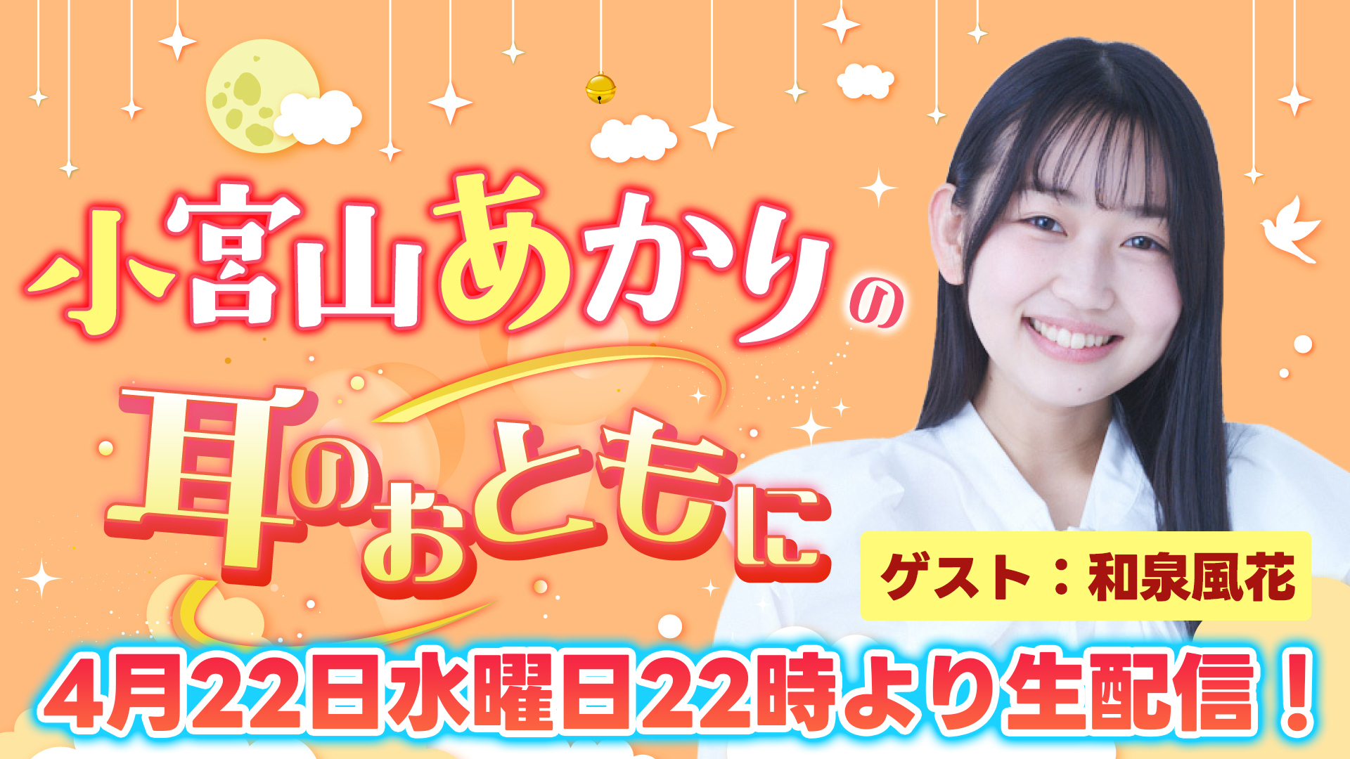 「小宮山あかりの耳のおともに」第4回4月22日水曜日22時より生配信!【ゲスト:和泉風花】