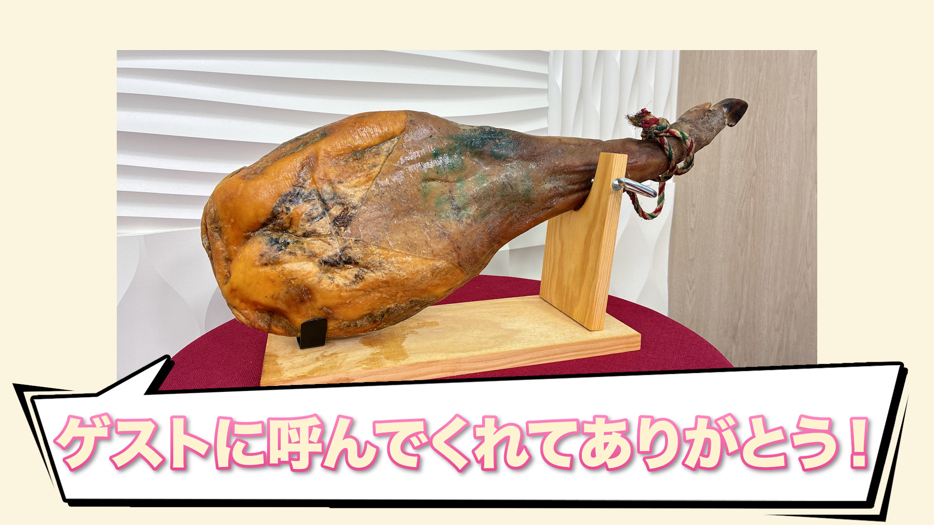 本編であーやがカットした生ハムの原木!!!