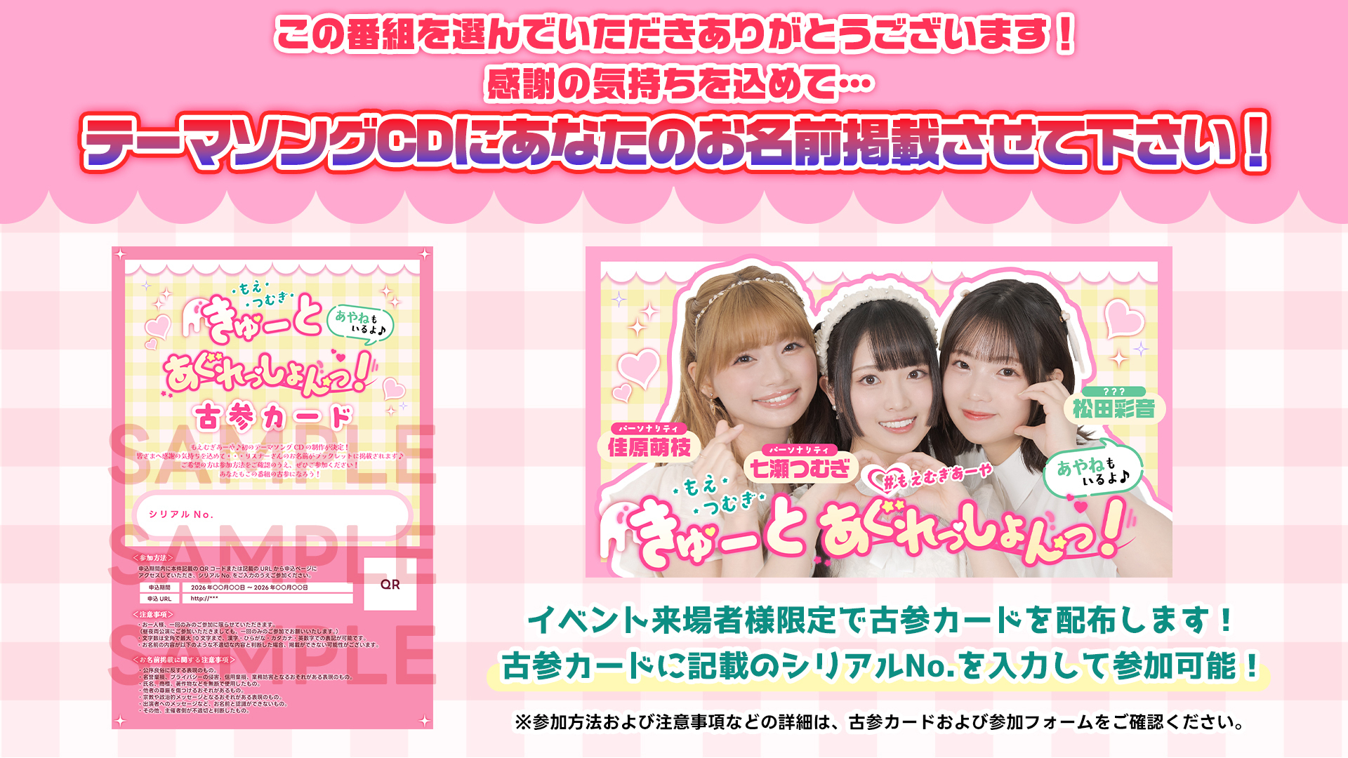 番組テーマソングCDのブックレットに、あなたのお名前が掲載させて下さい!