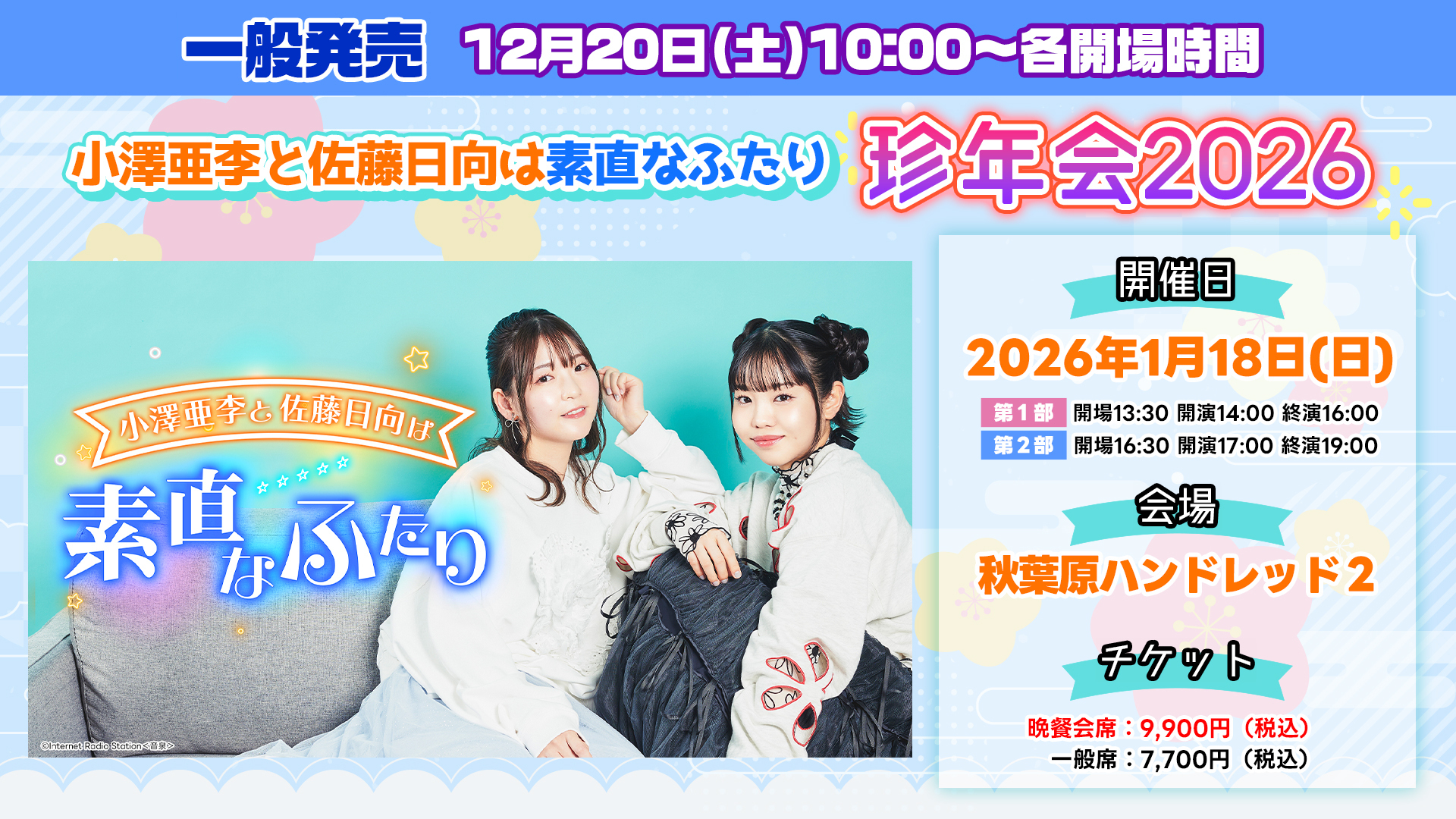 チケット情報など詳細は後日お知らせします。